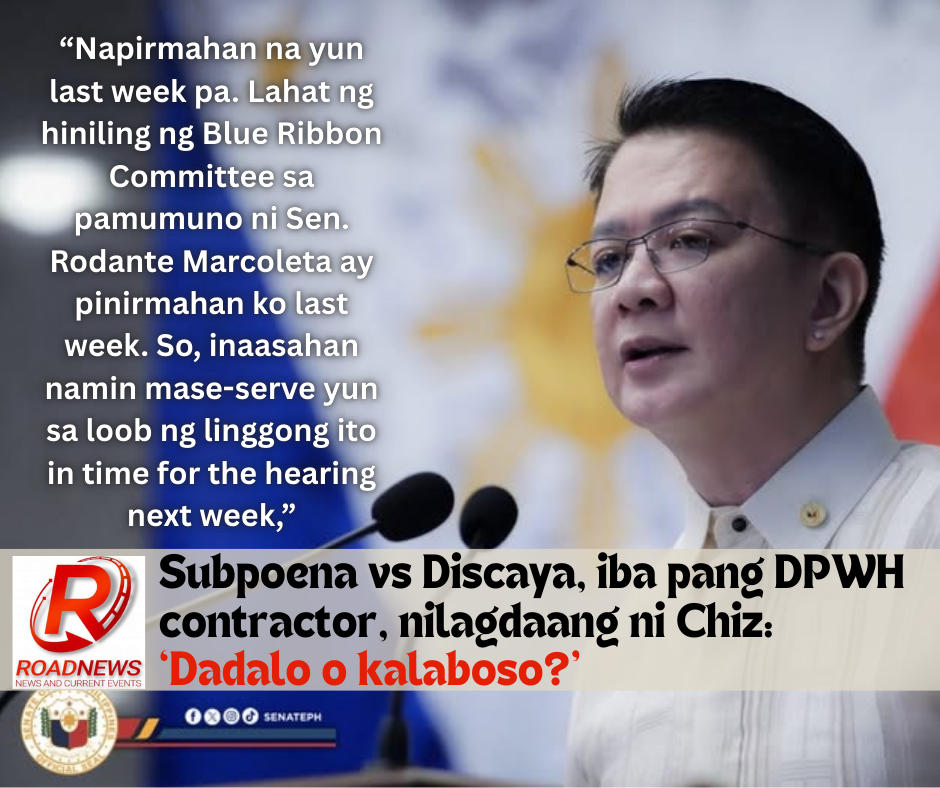 Sinabi ng Senate chief na isisilbi ang subpoena sa linggong ito at inaatasan na Dadalo ang mga contractor sa Blue Ribbon Committee investigation.