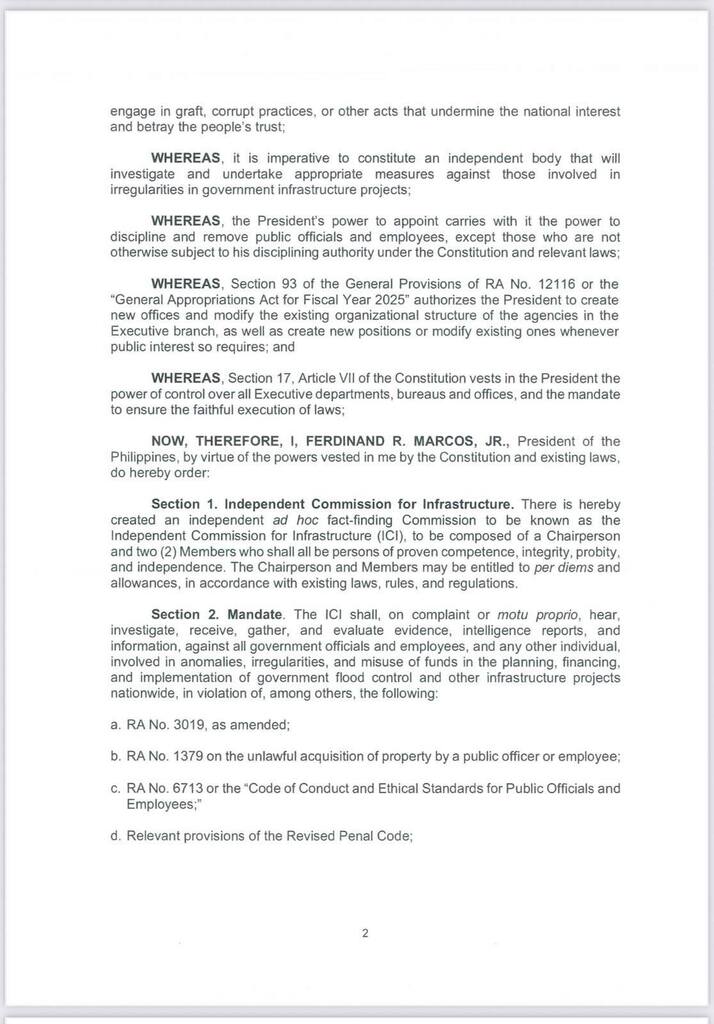 Independent Commission for Infrastracture; NILAGDAAN NA NG PANGULO