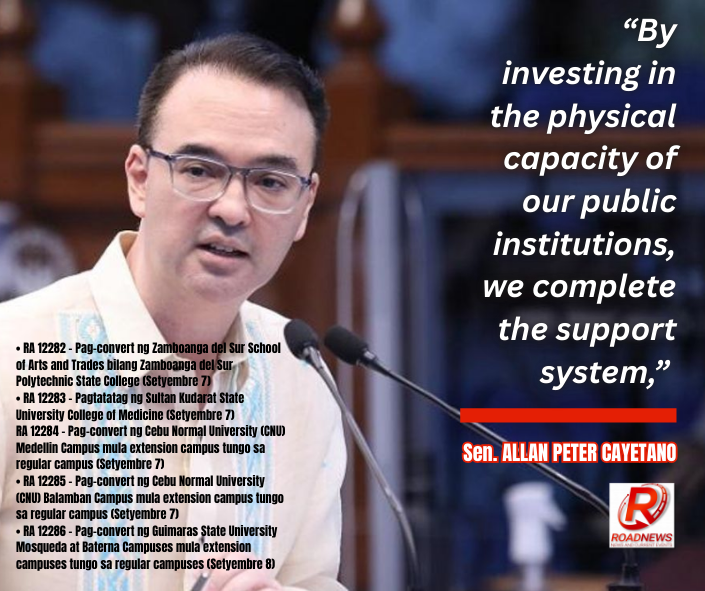 Mas pinalawak ang access sa dekalidad na college education sa ilang lalawigan matapos maging ganap na batas kamakailan ang limang panukalang inisponsor ni Senate Minority Leader Alan Peter Cayetano.