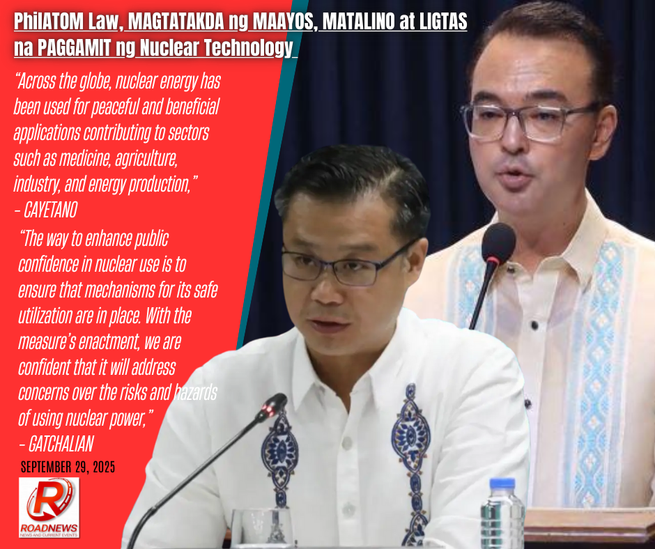 “It’s obvious why we need the PhilATOM [as established by the] Nuclear Energy Safety Act. It plays a vital role in treating diseases, food security, improving crop yield, mitigating the effects of climate change and generating clean, reliable power or electricity,” ayon kay Cayetano.