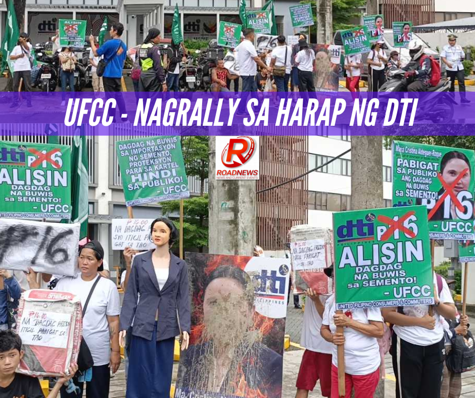 Nagsagawa ng kilos protesta ang United Filipino Consumers and Commuters UFCC sa harap ng Department of Trade and Industry (DTI) para ipanawagan na tanggalin ang P16 dagdag na buwis sa semento.