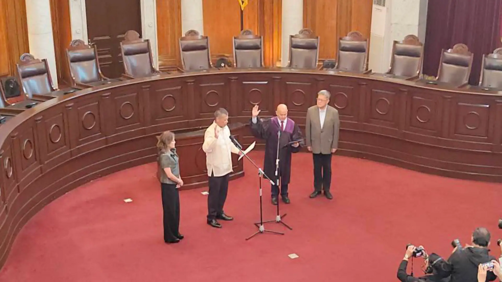 Opisyal nang nakapanumpa bilang bagong Ombudsman Jesus Crispin Remulla sa harap ni Supreme Court Senior Associate Justice Marvic Leonen, ngayong umaga.