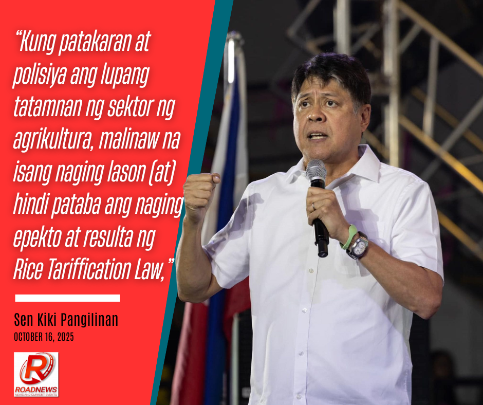 “Kung patakaran at polisiya ang lupang tatamnan ng sektor ng agrikultura, malinaw na isang naging lason (at) hindi pataba ang naging epekto at resulta ng Rice Tariffication Law,” ani Pangilinan, sa kanyang opening statement.