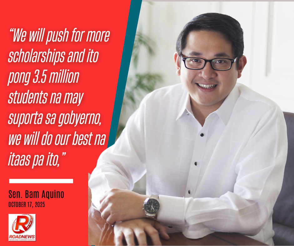 Tiniyak ni Senador Bam Aquino na may pondo para sa 3.5 milyong benepisaryo ng Libreng Kolehiyo Law sa lahat ng state universities and colleges (SUCs), local universities and colleges (LUCs), at pribadong educational institutions sa 2026 national budget.
