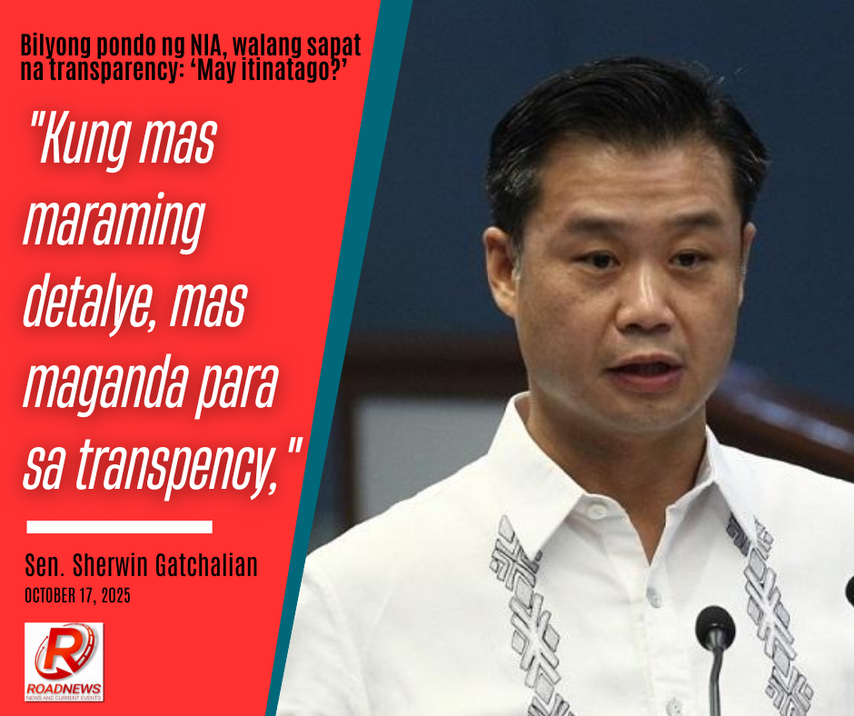 “Kung mas maraming detalye, mas maganda para sa transpency,” pahayag ni Gatchalian sa isang pagdinig hinggil sa panukalang pondo ng NIA para sa 2026.