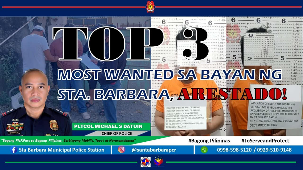 TOP 3 MOST WANTED SA MUNISIPYO NG STA BARBARA, ARESTADO SA MANHUNT OPERATION