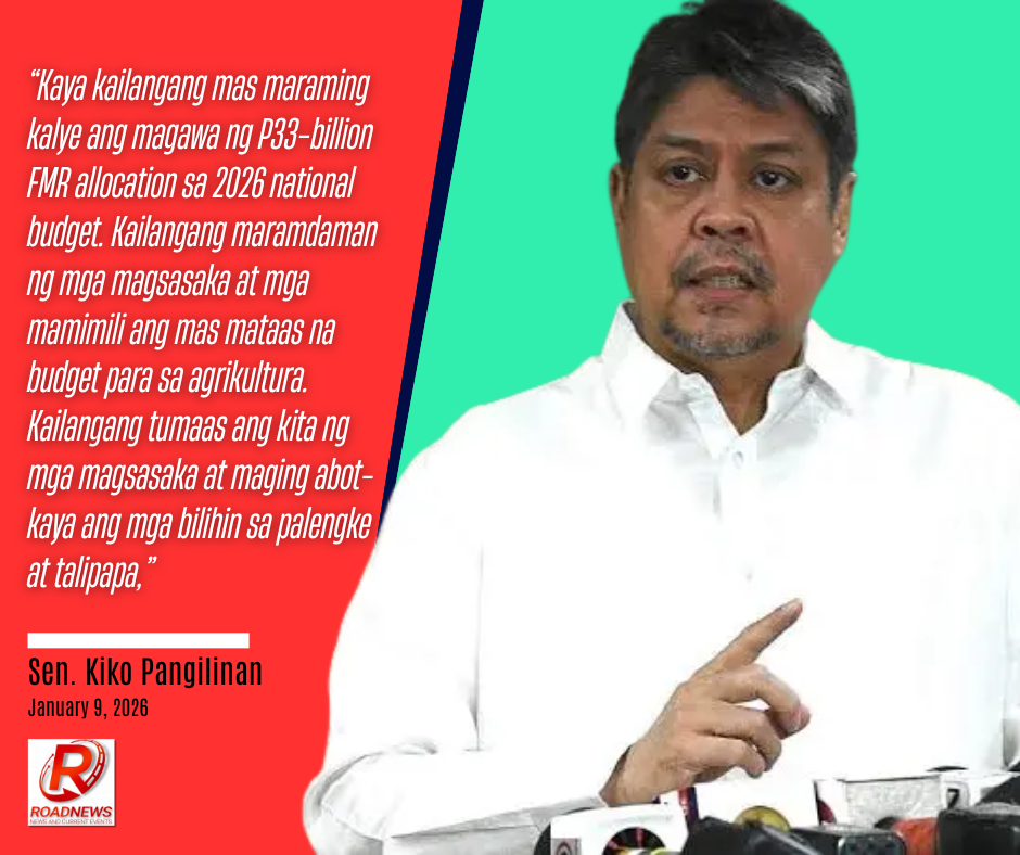 “Kaya kailangang mas maraming kalye ang magawa ng P33-billion FMR allocation sa 2026 national budget. Kailangang maramdaman ng mga magsasaka at mga mamimili ang mas mataas na budget para sa agrikultura. Kailangang tumaas ang kita ng mga magsasaka at maging abot-kaya ang mga bilihin sa palengke at talipapa,” giit ni Pangilinan.
