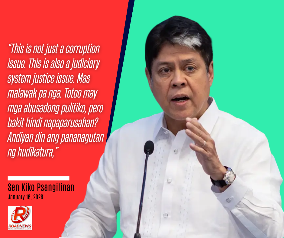“This is not just a corruption issue. This is also a judiciary system justice issue. Mas malawak pa nga. Totoo may mga abusadong pulitiko, pero bakit hindi napaparusahan? Andiyan din ang pananagutan ng hudikatura,” ani Pangilinan sa panayam.