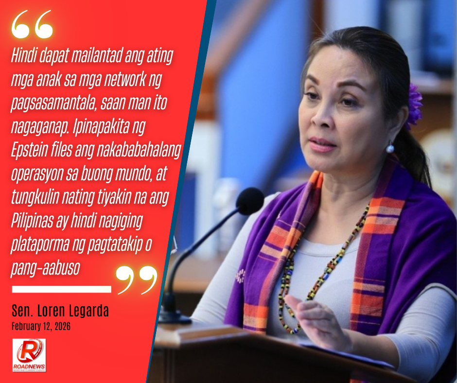 “Hindi dapat mailantad ang ating mga anak sa mga network ng pagsasamantala, saan man ito nagaganap. Ipinapakita ng Epstein files ang nakababahalang operasyon sa buong mundo, at tungkulin nating tiyakin na ang Pilipinas ay hindi nagiging plataporma ng pagtatakip o pang-aabuso,” ani Legarda.
