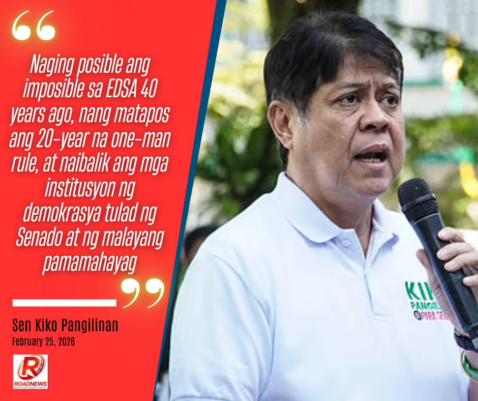 “Naging posible ang imposible sa EDSA 40 years ago, nang matapos ang 20-year na one-man rule, at naibalik ang mga institusyon ng demokrasya tulad ng Senado at ng malayang pamamahayag,” ani Pangilinan.