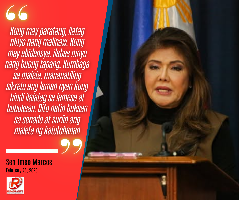 “Kung may paratang, ilatag ninyo nang malinaw. Kung may ebidensya, ilabas ninyo nang buong tapang. Kumbaga sa maleta, mananatiling sikreto ang laman nyan kung hindi ilalatag sa lamesa at bubuksan. Dito natin buksan sa senado at suriin ang maleta ng katotohanan,” ayon kay Imee Marcos.
