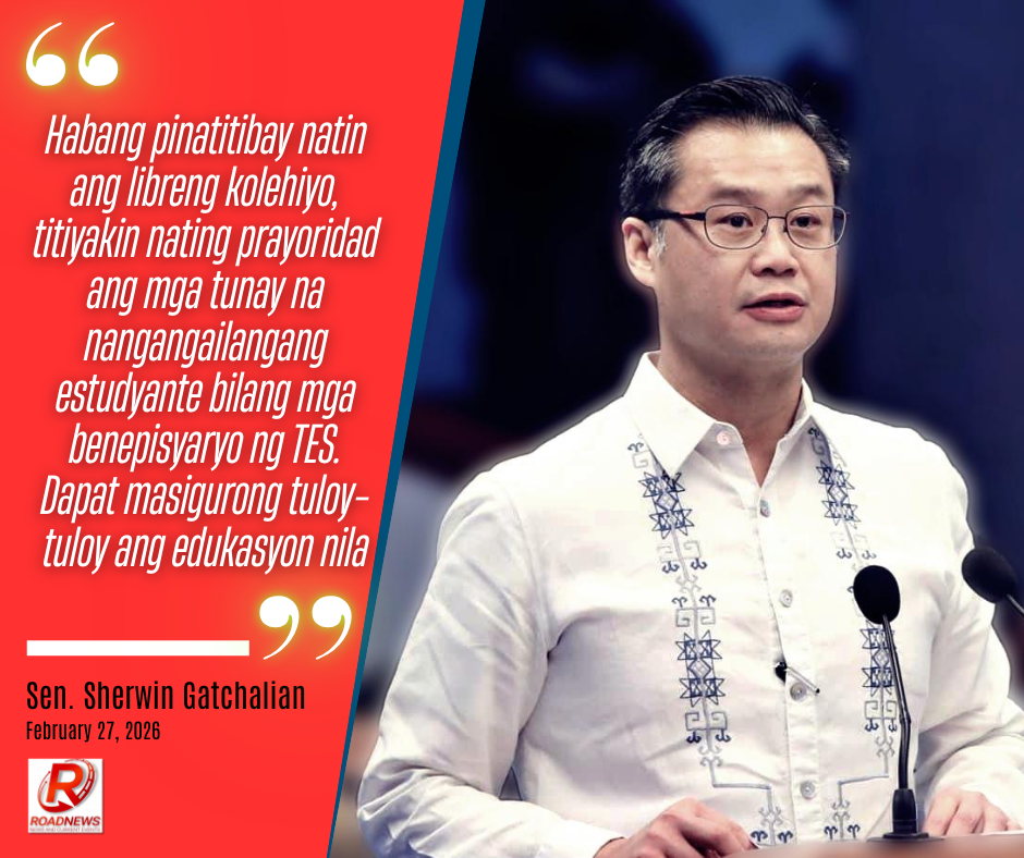 “Habang pinatitibay natin ang libreng kolehiyo, titiyakin nating prayoridad ang mga tunay na nangangailangang estudyante bilang mga benepisyaryo ng TES. Dapat masigurong tuloy-tuloy ang edukasyon nila,” ani Gatchalian, Chairman ng Senate Committee on Finance.