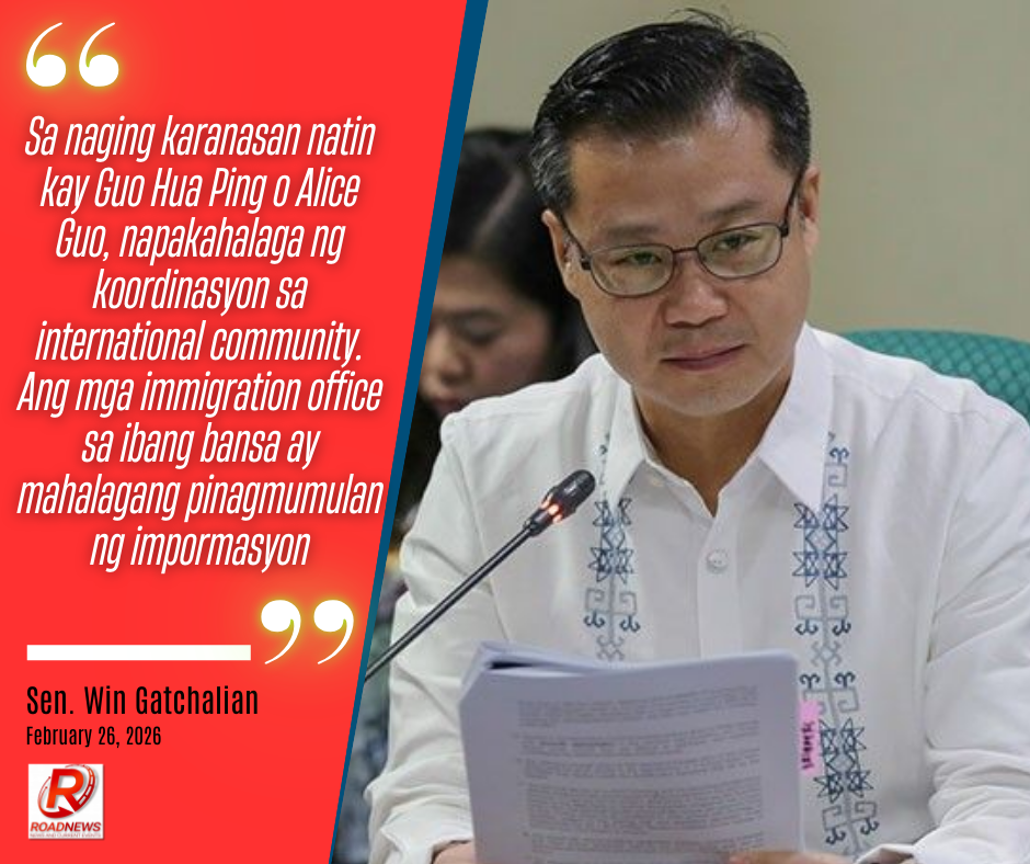 “Sa naging karanasan natin kay Guo Hua Ping o Alice Guo, napakahalaga ng koordinasyon sa international community. Ang mga immigration office sa ibang bansa ay mahalagang pinagmumulan ng impormasyon,” ani Gatchalian sa isang pagdinig sa Senado.