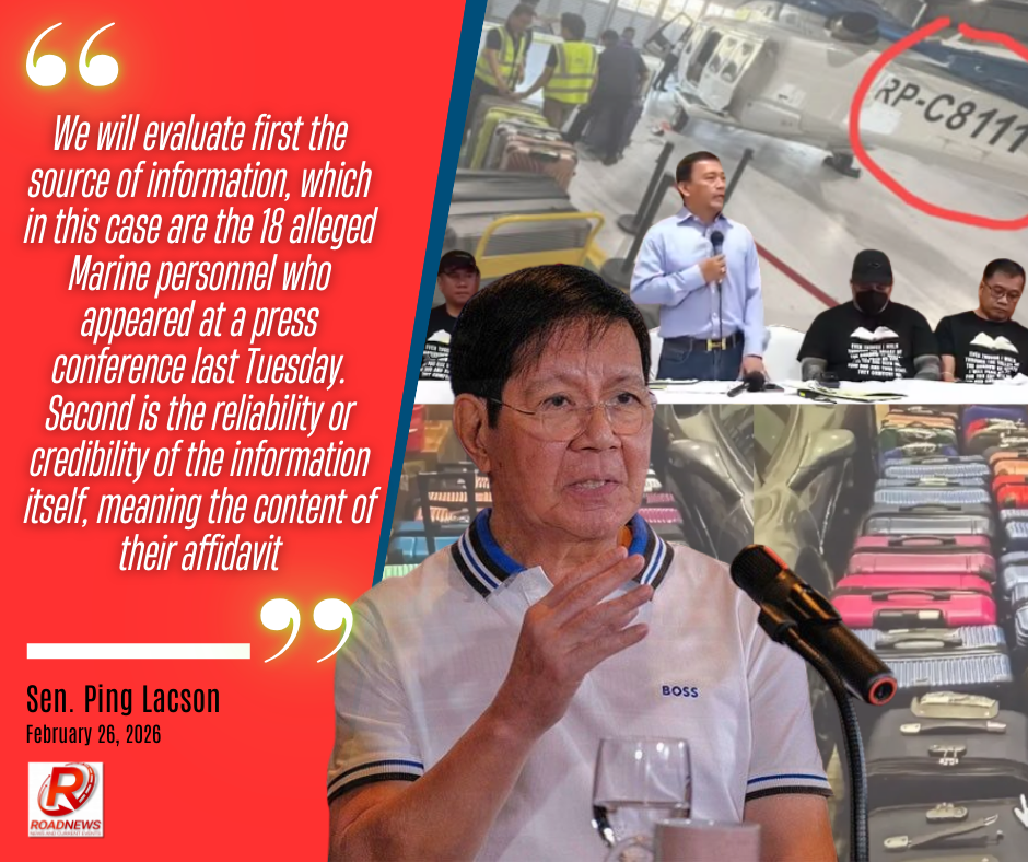 “We will evaluate first the source of information, which in this case are the 18 alleged Marine personnel who appeared at a press conference last Tuesday. Second is the reliability or credibility of the information itself, meaning the content of their affidavit,” ani Lacson.
