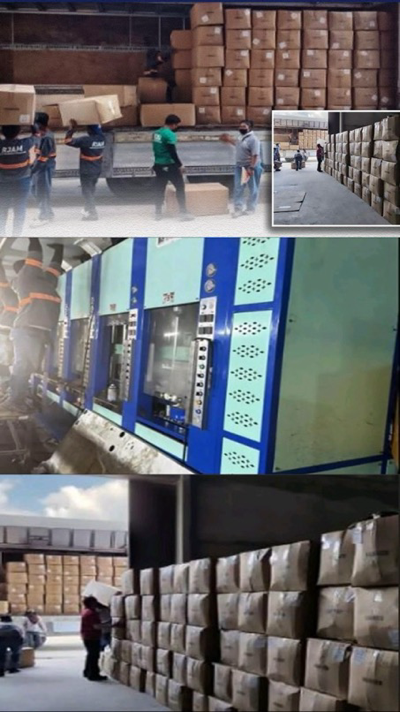Nakumpiska ang 181 kahon ng pekeng rubber footwear na may tatak ng Crocs, 30 sako ng rubber resin, apat na set ng heavy machinery, at iba’t ibang dokumento ng negosyo.