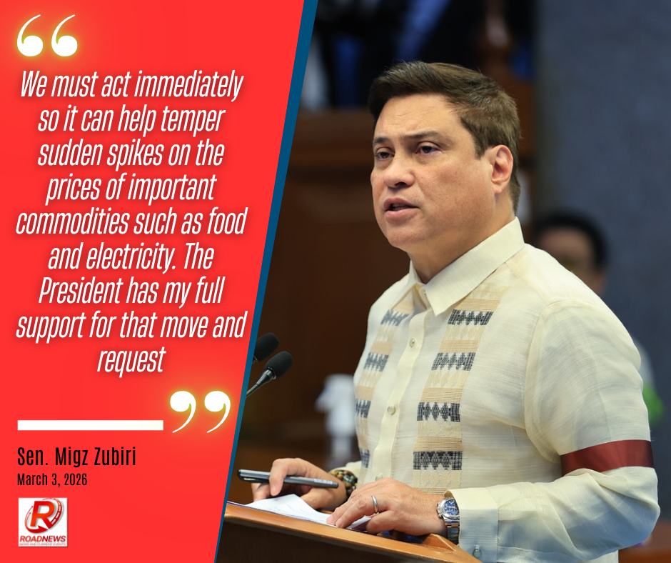 “I am in favor of granting the president those powers to be able to lower the excise tax on fuel. That move will definitely help cushion the impacts on high fuel cost due to the ongoing conflict in the middle east,” ani Zubiri.