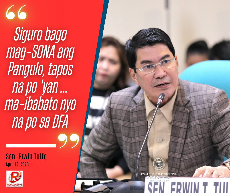 “Siguro bago mag-SONA ang Pangulo, tapos na po ‘yan … ma-ibabato nyo na po sa DFA,” ayon kay Tulfo.